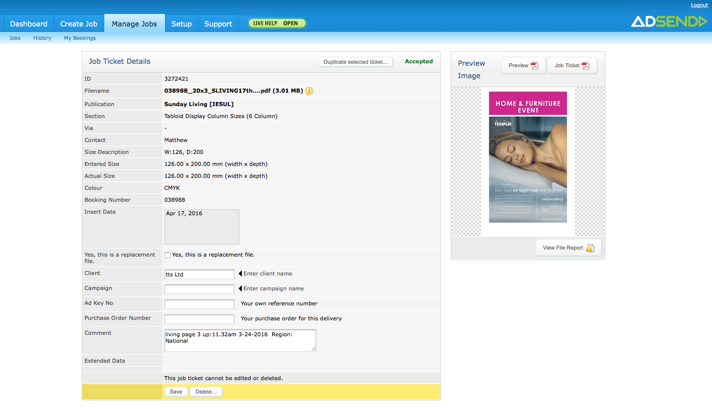 Mediainc provide local on-site, remote and telephone technical support for the Adsend platform and as our customers will testify, our service is second to none. Our relationship with our publishing partners ensures incredibly flexibility can be provided to our customers if the need arises – thus ensuring we build incredibly strong relationships with everyone involved in the process. Additionally, we have Live Help within the Adsend platform and telephone technical support from our trained technicians available throughout business and key production hours.
